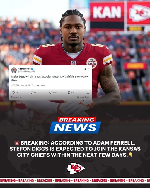 According to sports reporter Adam Ferrell, star wide receiver Stefon Diggs is expected to join the Kansas City Chiefs within the next few days, immediately sparking speculation across the league.